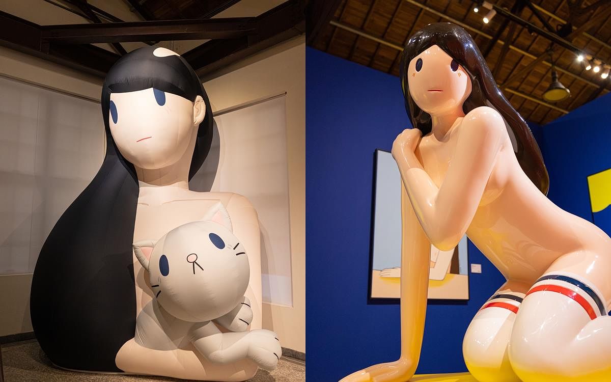 左圖:天野タケル首次台北大型個展「維納斯與貓」大型氣球裝置藝術。(APOL Gallery提供)