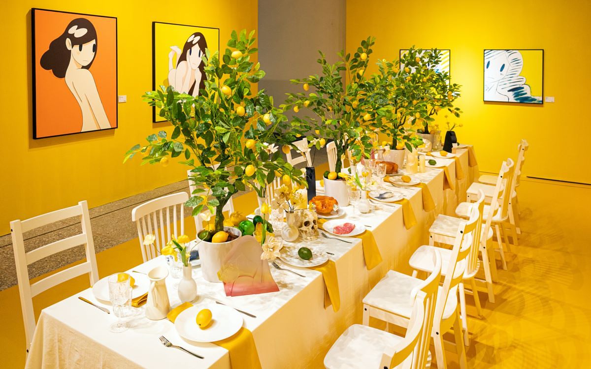 天野タケル首次台北大型個展大型藝術裝置《餐桌》場景。(APOL Gallery提供)