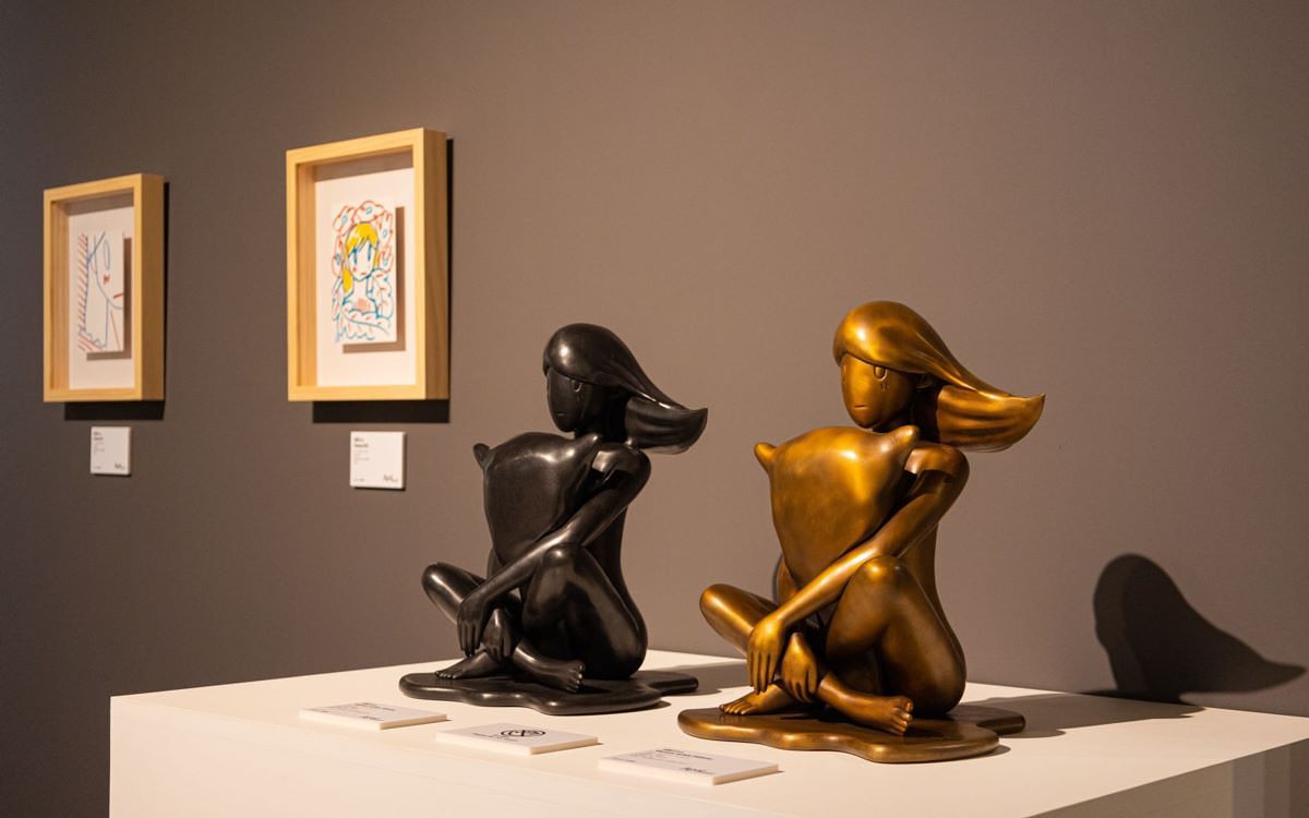 不僅展覽原作豐富性十足,就連周邊藝術藏品也是!繼上述木版畫作與樹脂材質雕塑之外,更是看到了天野タケル難得使用銅料材質打造「抱著枕頭的維納斯」,詮釋出自己VENUS 女神系列作品的嶄新精緻面。藉由銅料元素讓整體雕塑藏品的視覺上帶來了更多的古典精緻氣息,且格外具有歐洲經典藝術風情。在顏色上分別能看到華麗金、內斂黑與玄秘藍等選擇,每款配色皆散發出不同的風格與個性,替廣大藏家們貼心的提供了不同的品味需求。
