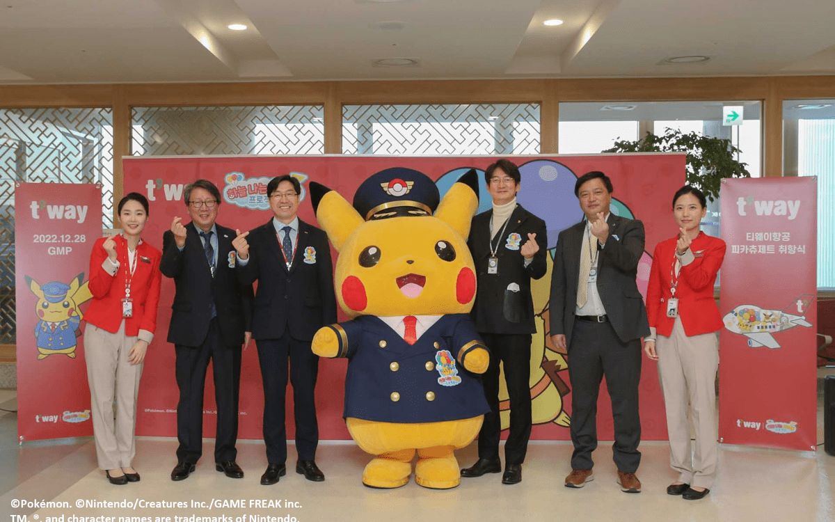 The Pokémon Company的『飛翔皮卡丘計畫』與韓國德威航空合作,在韓國發表了「皮卡丘彩繪機 TW」,並於12月28日在韓國金浦國際機場舉辦「皮卡丘彩繪機TW」的首航紀念典禮。德威航空總裁鄭鴻根、韓國觀光公社首爾地區本部長金斗煥、The Pokémon Company Korea執行長林宰範、The Pokémon Company執行董事福永晉參加本次典禮時表示「希望『皮卡丘彩繪機 TW』能帶給世界各地乘客無盡的歡樂」,表示無比期待。首航紀念典禮結束後,「皮卡丘彩繪機 TW」自韓國金浦國際機場飛往台灣台北松山機場,今後飛行航班路線也將以韓國國內線及亞洲線的國際線航班為主。