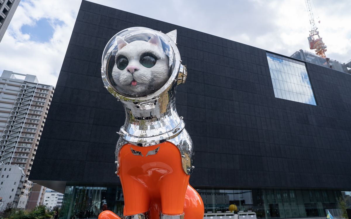 位於中之島美術館入口由當代藝術家矢延憲司創作的的雕塑作品「SHIP'S CAT(Muse)」,靈感來自大航海時代時,貓隨船員一同登船。「京阪控股株式會社」提供