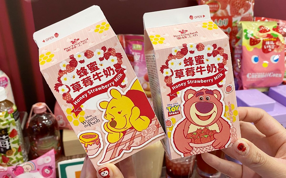 蜜蜂工坊與迪士尼聯名飲品,帶有香甜的草莓與蜂蜜完美融合,滋味酸中帶甜。