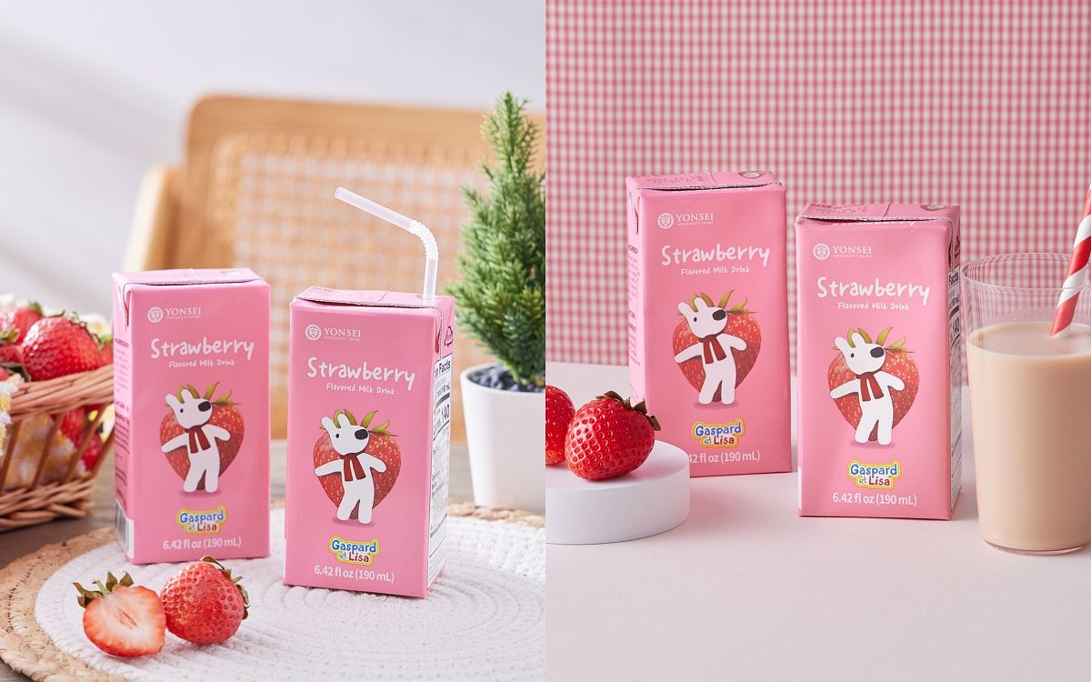 韓國原裝進口的延世大學調味乳,乳源來自韓國延世大學自有牧場產出的高品質牛乳,沒有過度的調味或奇怪的添加物,加入微酸微甜的草莓滋味,包裝上還有超萌麗莎和卡斯柏的可愛愛身影。