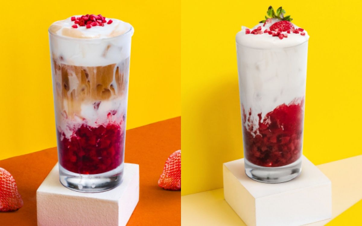 推出初戀系特調「草莓煉乳」系列,「草莓煉乳拿鐵」使用新鮮草莓醬、小農鮮奶,與花果香的中淺焙咖啡調配,甜而不膩!另外也有不加咖啡的選擇—「草莓煉乳歐蕾」。