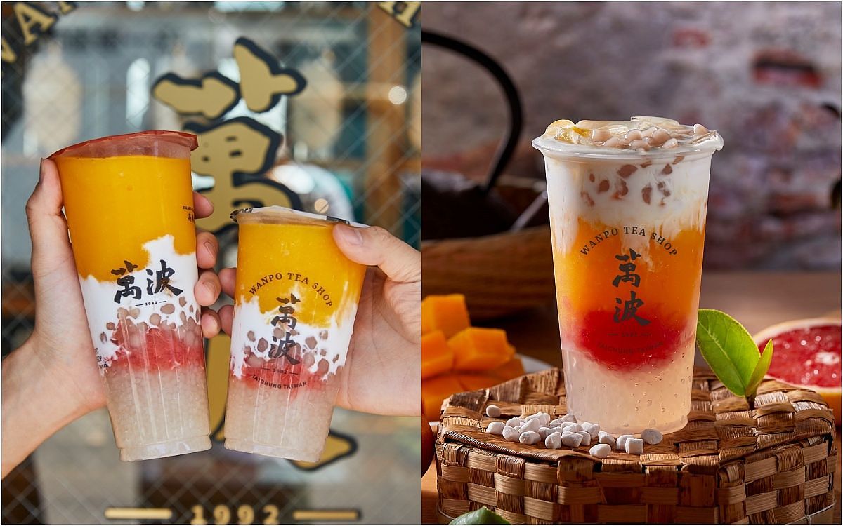 萬波島嶼紅茶人氣商品之一的「楊枝甘露」,使用芒果、西米露、椰漿和紅柚為主要原料,與其他家不同之處在於另外加加料萬波「招牌小芋圓」,讓楊枝甘露口感與香氣更添層次。(若不想加可於點餐時提前告知)