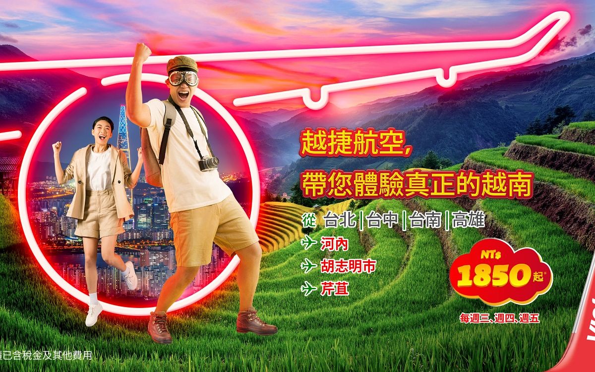 圖片來源:越捷航空針對台灣旅客,越捷航空現在提供自台北、台中、台南、高雄至越南胡志明市、河內和芹苴的直飛航班,讓台灣消費者可更輕鬆地暢遊越南和其他旅遊勝地。除了便利且豐富的航線選擇,越捷航空提供的優質飛航體驗也是眾所皆知,包含SkyBoss商務艙、Skyboss艙、Deluxe中階艙和經濟艙的多元艙等選擇,機上有專業、友好的機組人員提供充滿越南和國際特色的餐飲服務,還有更多頂級的客戶服務,讓旅客從旅程的最開始,就能透過搭機體會到越南文化之美。