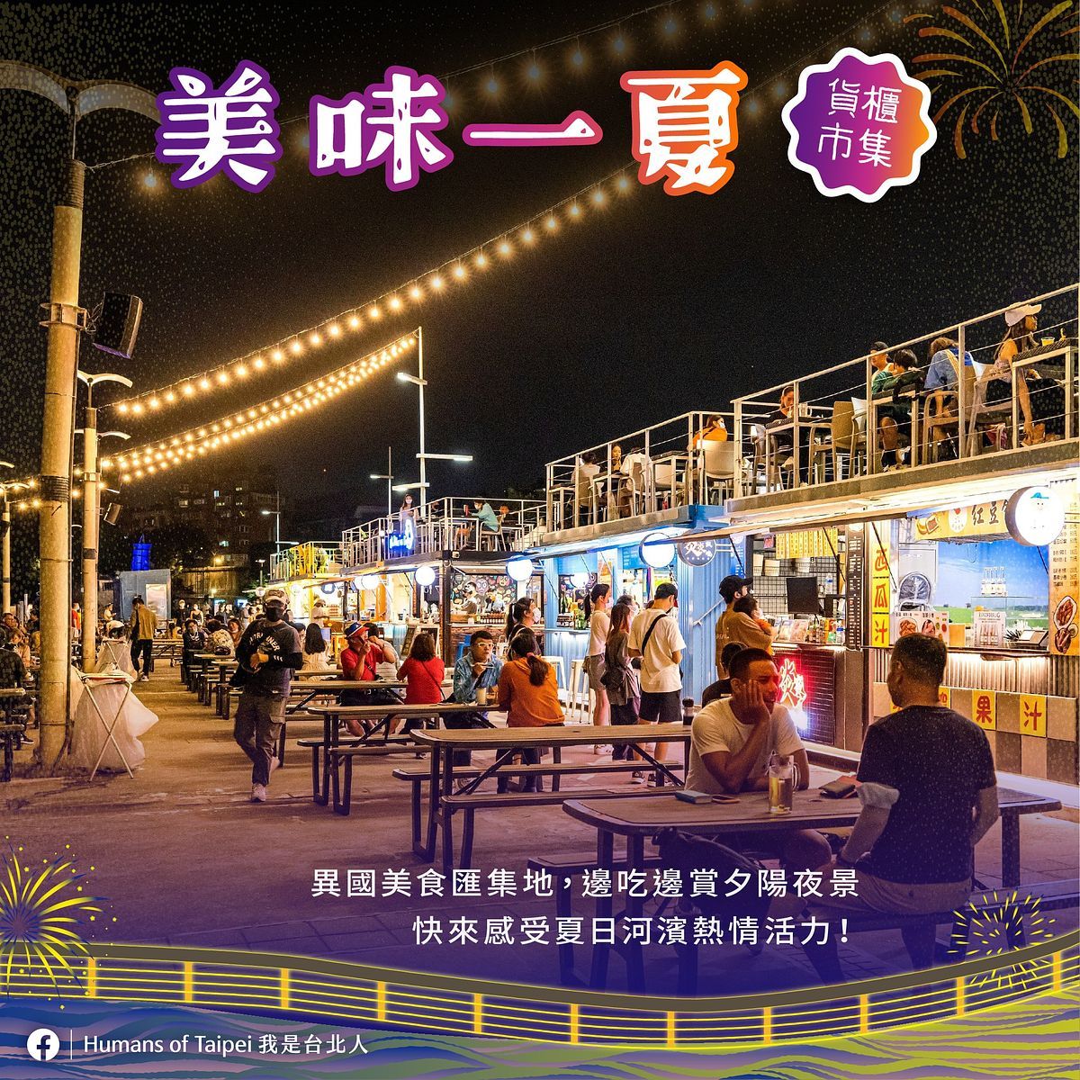 加上大稻埕貨櫃市集的異國美食結合「環騎臺北」挑戰,沿著河濱騎乘自行車至大稻埕,一邊賞煙火、一邊品嚐美食,於夏日享受台北絢麗的夜晚,好不浪漫!
