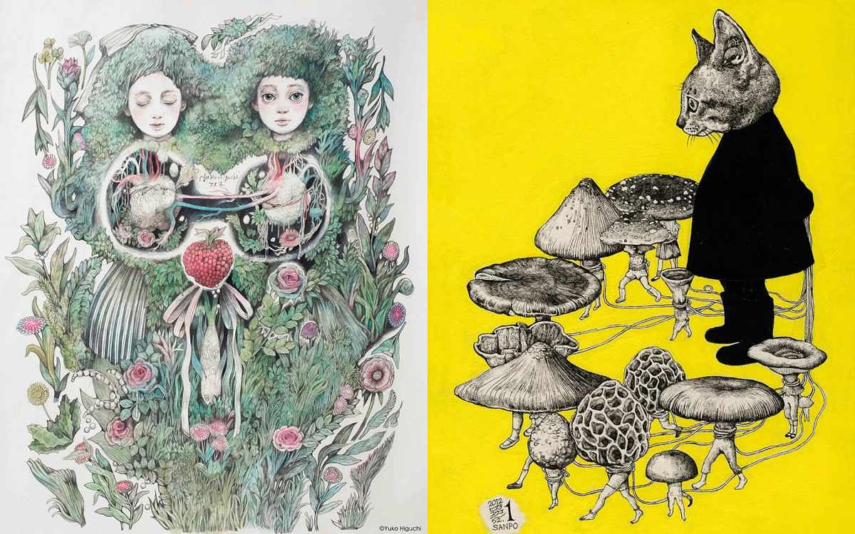樋口裕子是日本近代相當受到歡迎的畫家、藝術家,作品常以貓咪、鳥類、蘑菇等動植物作為主題,她擅長將不同生物及植物拼湊在一起,雖然用色繽紛、線條細緻,但風格絕非如童話般美好、黑暗詭譎又超現實的世界觀,融合成衝突的神奇物種、可愛又獵奇的角色,正是她令人著迷的地方。也因為這樣多變前衛的繪畫風格,不僅自成「Higuchi Yuko流」,吸引多個知名品牌邀請合作,其中以2018年開始的GUCCI合作系列受到許多人關注,也曾與大型IP如日本迪士尼、寶可夢相繼合作在日本國內廣受好評,近年電影海報的作品在國際上也獲得相當大的矚目!