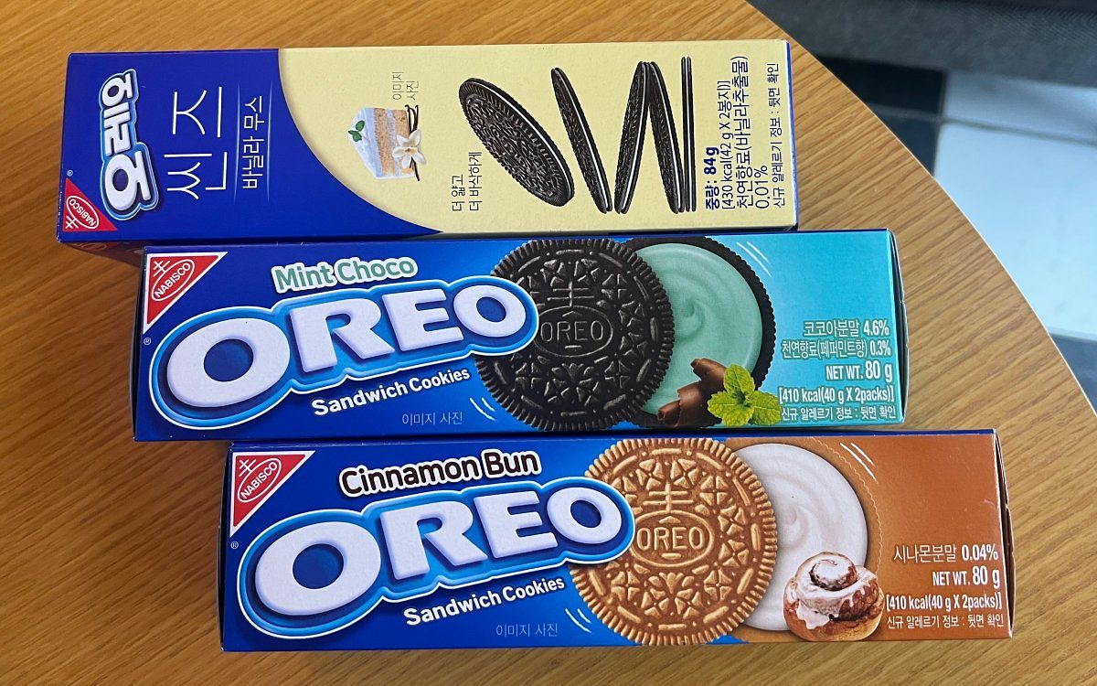 喜歡吃OREO奧利奧的朋友千萬不要錯過韓國各家便利商店,不僅有許多口味也經常會遇到買2送1的活動,非常推薦大家可以吃吃看台灣買不到的輕薄版,餅乾跟內餡直接變薄,吃起來比較不甜膩,餅乾的可可香也更明顯!熱愛肉桂捲的朋友可以試試看肉桂捲口味~