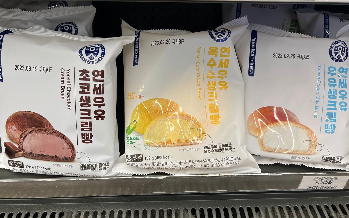 在台灣7-11部分限定商店曾販售的延世大學生乳包,在韓國CU便利商店也是超熱門的商品,基本的牛奶、巧克力牛奶口味外,也有玉米等不同口味,鬆軟的麵包搭配濃郁奶香的內餡,經常賣光光呢,架上有看到千萬記得買走!