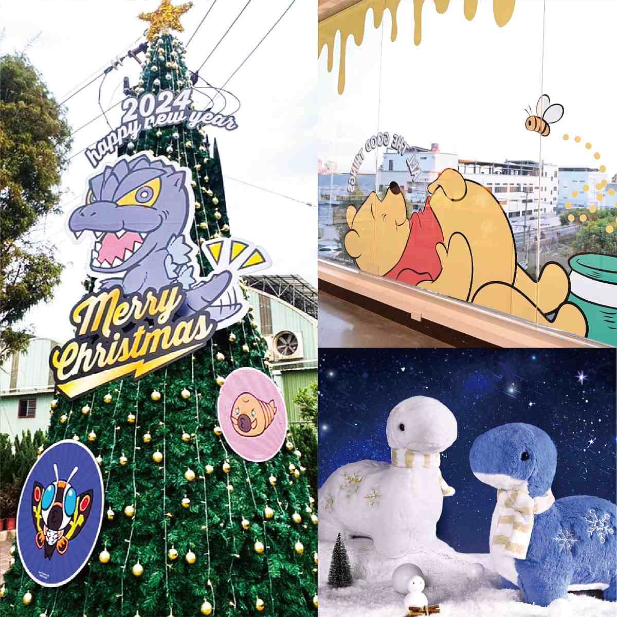 最令人驚艷的,莫過於 KHTOY 絨毛玩偶旗艦館展示的哥吉拉聖誕樹,為了迎接龍年特製的聖誕樹上融入哥吉拉元素的裝飾,身上點綴著閃閃發光的燈飾,必拍打卡景點就在這裡!