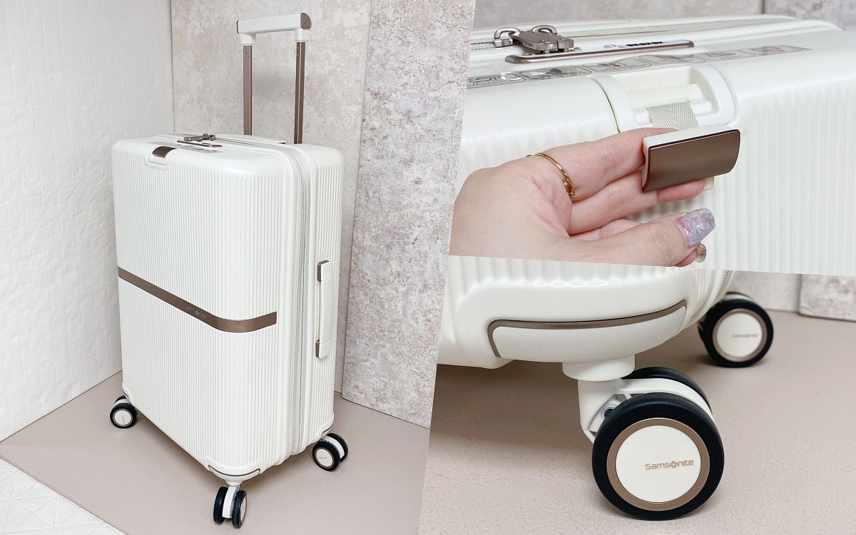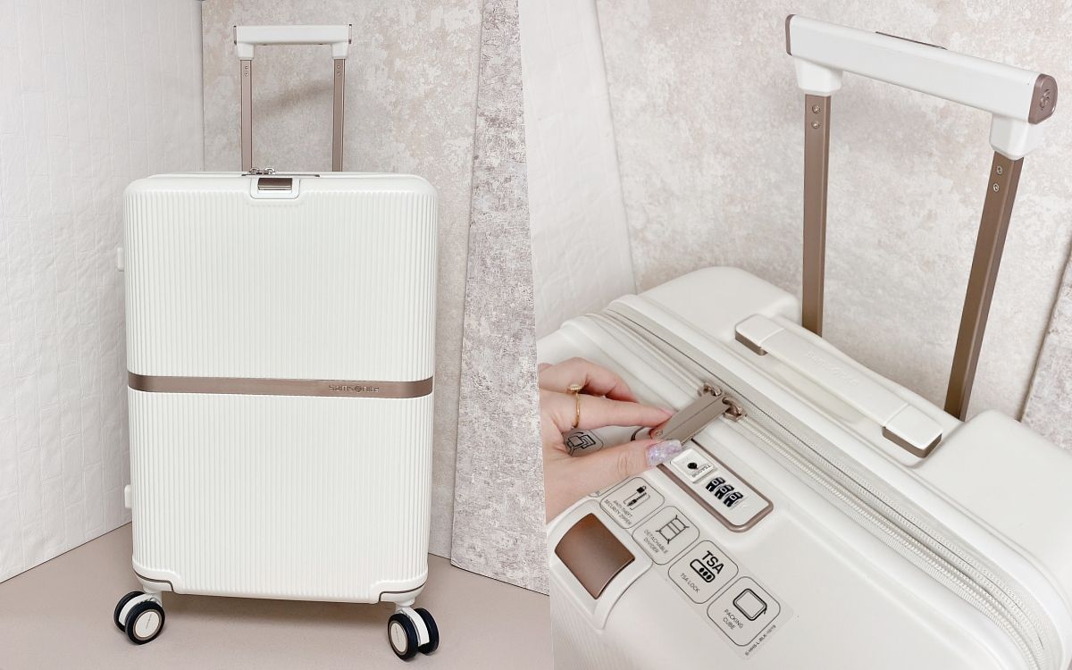 Samsonite不僅是國際知名旅行箱品牌,更默默收穫了許多使用者推薦好評,而旗下這款「MINTER」系列璀璨亮眼的流金箱以都會時尚的極簡造型設計體現高雅不凡的氛圍,奶白色外殼上細長的垂直凹槽搭配中間粉棕香檳色的鋁合金LOGO,眾多細節呈現出低調奢華的質感,只要一拉出門絕對詢問度超高!