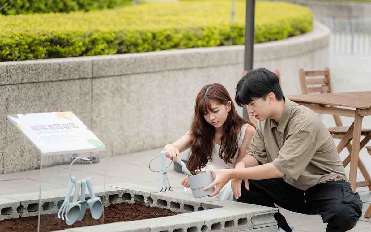 圖片來源:IKEA 城市花園:此區以瑞典四大城市命名,採用別稱庭園黑金的「腐植土」種植,由廢樹枝落葉有機物分解腐熟而成,具有豐富養分的天然土壤,種出一片綠意植栽。另設有咖啡渣環保共享區,消費者可以自備容器免費裝回家,將咖啡渣再利用作為植物肥料、除溼除臭劑等用途,一起資源循環再利用環保愛地球。