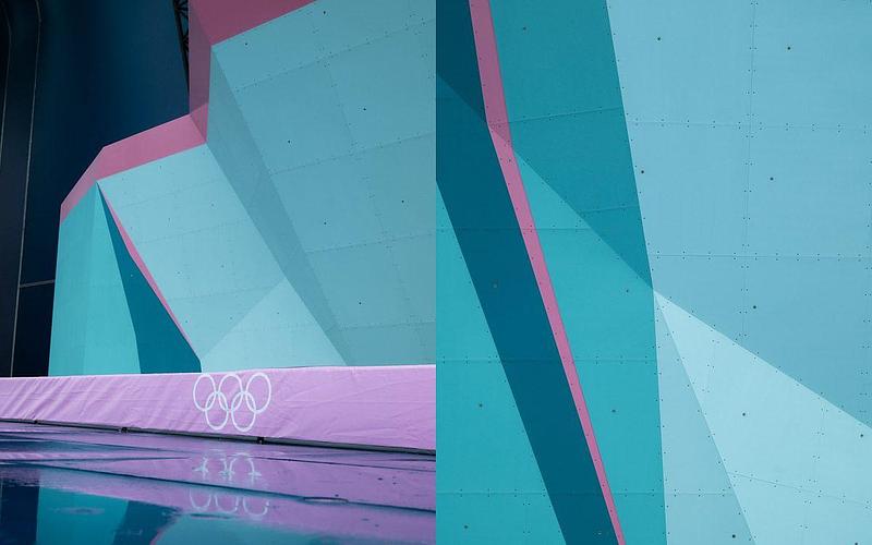 攀岩牆採用奧運主色調的綠、以深淺色變化來設計,並在邊緣搭配粉紅色邊框,牆的頂部設有頂棚,防止下雨或陽光直射。當完工照片一釋出,網友一致留言回饋:「真的好時尚!太美了!」