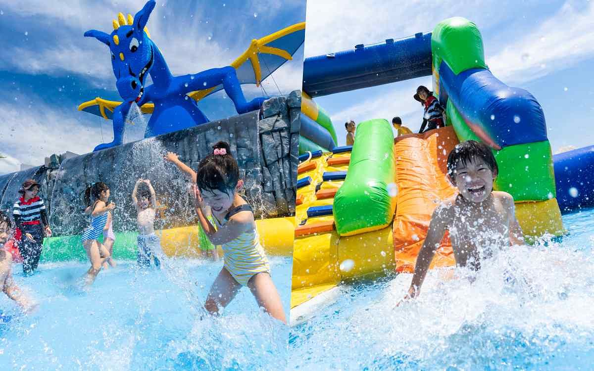 圖片來源:日本樂高樂園時隔一年在樂高樂園再次登場的「水上迷宮Water Maze」更是不可錯過的重點設施。在廣達2,400平方公尺的戲水區中有7個探險區與6個遊樂池,區域內還有多達18座水砲不時向空中噴灑水花,可以說是兒童們的戲水天堂。此外,還可以看到由約32萬個樂高所製成的巨大「藍龍」,佇立在高處關注守護著孩子們。