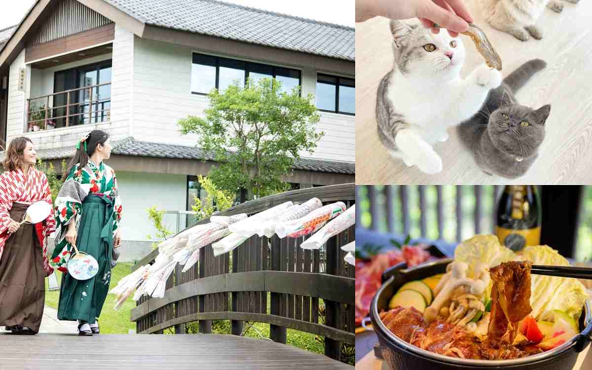 宜蘭綠舞國際觀光飯店即日起至12/30推出「新經典假期」一泊四食住房專案,品嚐全新日料品牌「日光璽舞」推出的壽喜燒套餐或蝶舞西式晚餐、擼LALA Sweets享受幸福的擼貓下午茶、以及住客專屬宵夜時光及翌日活力早餐。入住可與園區萌寵們互動餵食、體驗探索樂園的射箭及滑草遊戲、換穿唯美經典浴衣/Hakama文青袴暢遊日式園區、體驗茶藝文化。入住套房或Villa房型再享虛擬高爾夫體驗,透過虛擬實境裝置可切換多種模式及場景,盡情享受揮桿擊球的樂趣,四人入住每人只要$3,598起。