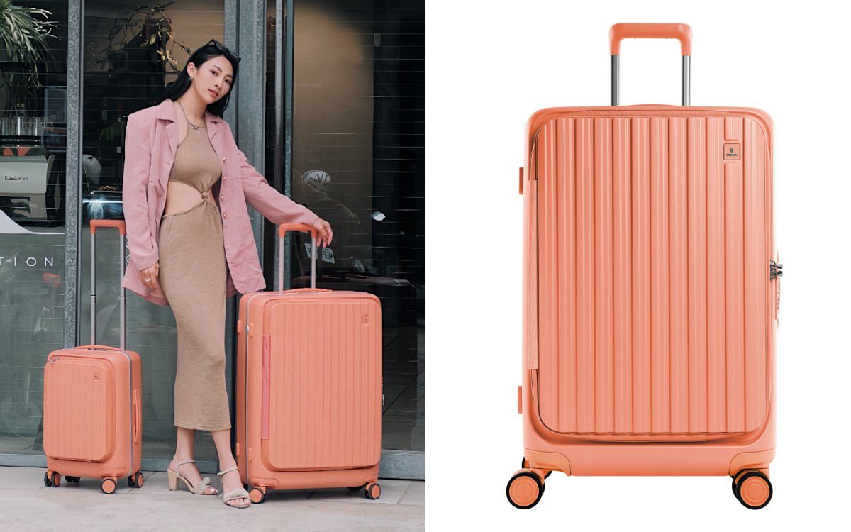 今夏新色—蜜桃粉橘色更是將屬於夏天的甜美清新,完美融入旅箱設計,彷彿散發蜜桃和柑橘的果香,拉上它走在街上,絕對是最吸睛的時尚焦點!