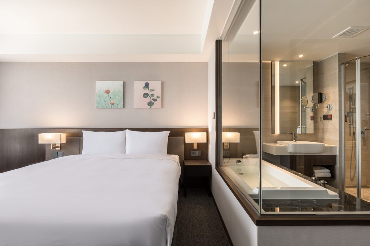 「煙波大飯店台南館」 的房間風格簡約沉穩,擁有尊榮一大床、尊榮套房、煙波套房、豪華家庭房等豐富房型,其中CP值最高的「豪華一大床」更是深受女孩歡迎!以深色調設計伴隨遼闊窗景,房內採光優秀,寬敞的衛浴空間擁大浴缸與乾濕分離的淋浴空間,待在房中能感受到愜意無壓的假期氛圍!