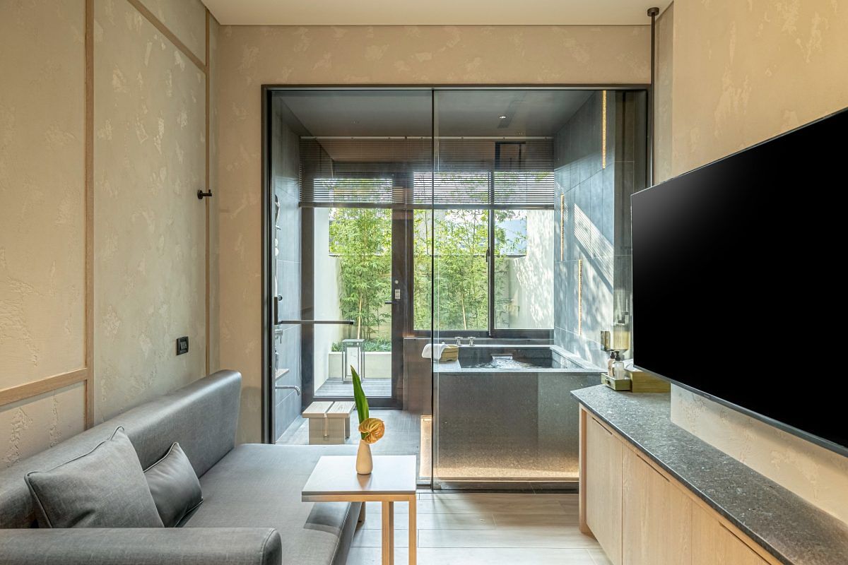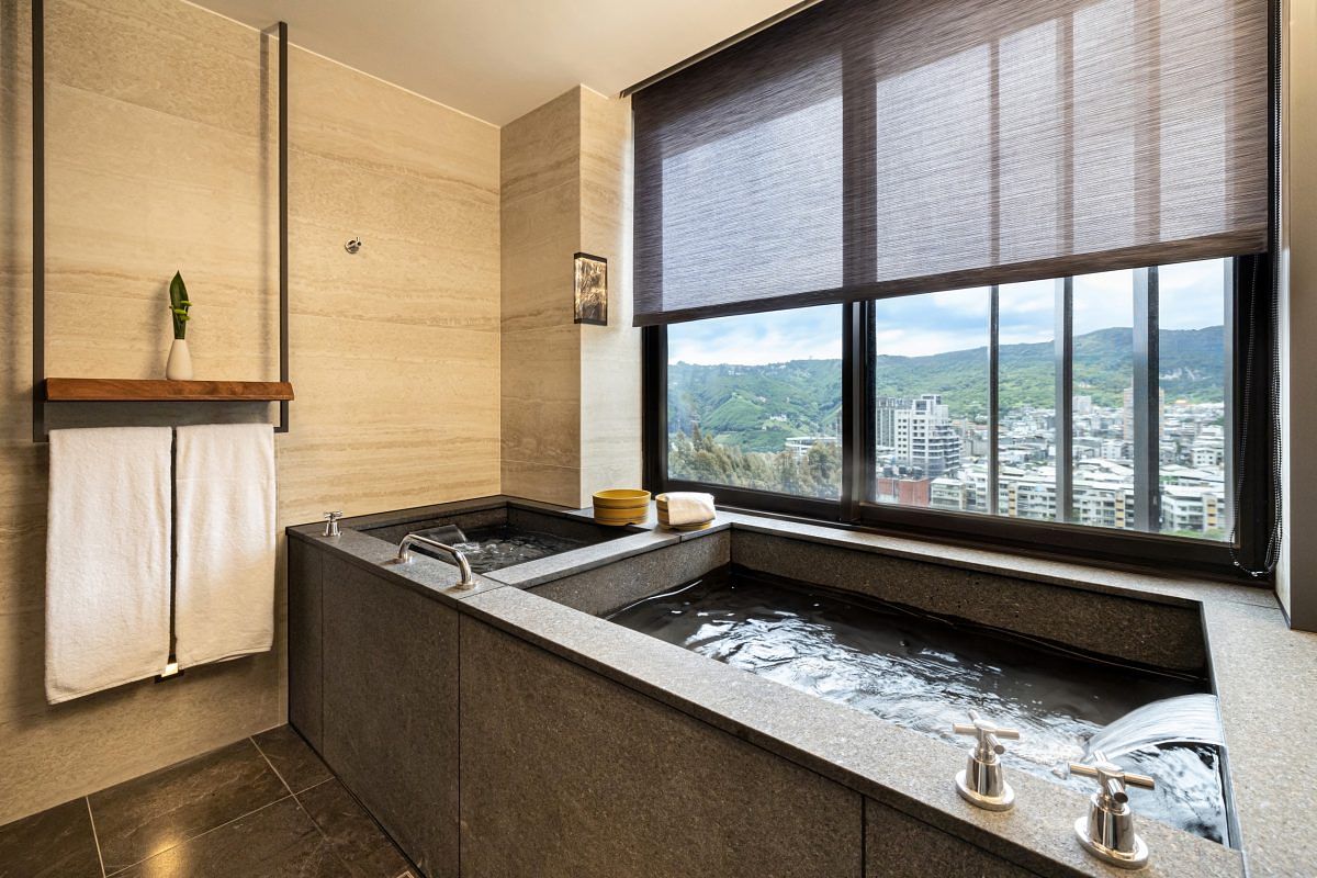 飯店依照「黃金級綠建築規格」打造,建立以永續為根基的營運理念,了解到「溫泉」是飯店的吸睛重點,多數房間都擁有獨立雙湯池,套房則規畫有戶外三湯池,提供北投知名的白磺泉滿足房客的泡湯需求。