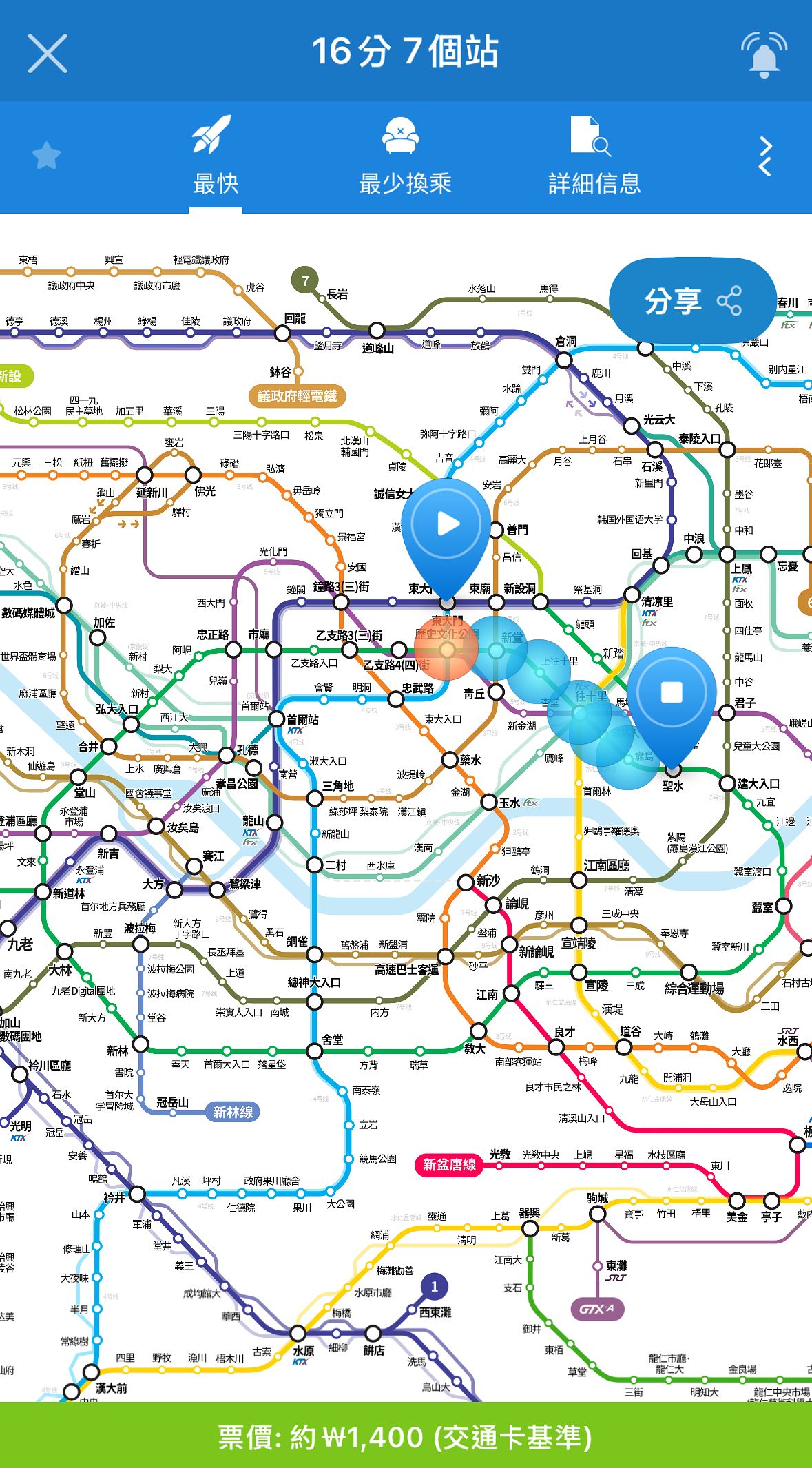 去韓國旅遊時最常使用的大眾交通工具不外乎就是地鐵了!但地鐵線路和站點都很多,常常會看到暈頭轉向的,這時有這個「 Subway Korea」的地鐵 App 就方便許多,Subway Korea 中可以選擇韓國五大城市,首爾、釜山、大邱、光州和大田的地鐵,而且可以切換為中文的地鐵圖,完全不用怕看不懂韓文。選擇好所在城市的地鐵圖後,只要點選出發的站點和想去的站點,App 就會顯示所需的時間、經過幾個站、地鐵票價等資訊,若中途需要換線的話,App 也會標示出需在哪一站換線。