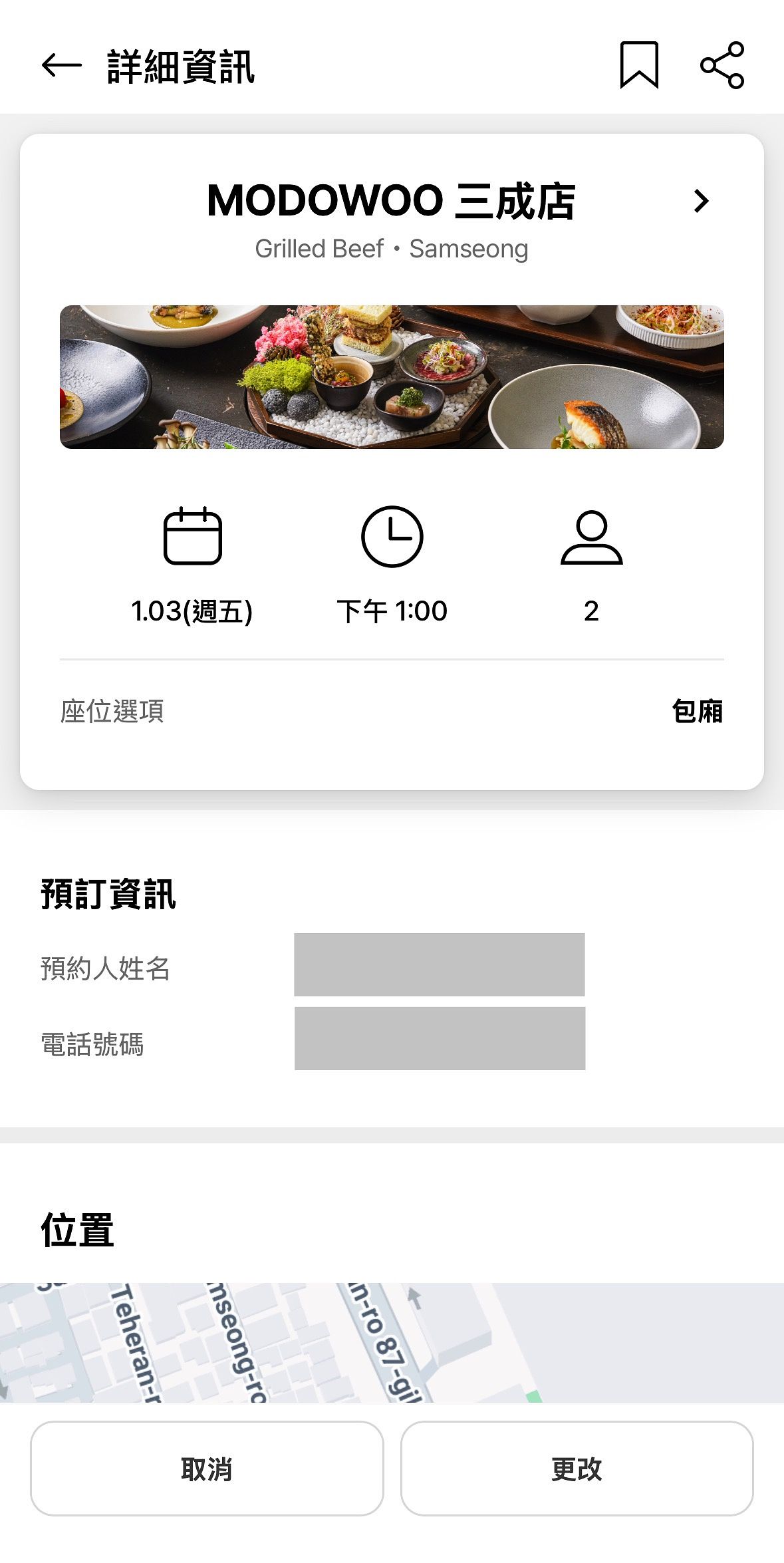 預定完成之後可以點選 App 頁面下方日曆的圖示,查看自己預定好的餐廳、預定的資訊,若是想要取消或變更訂位的話,只要點進自己的預定資訊就可以看到下方有取消和更改的按鈕。如果已經決定沒有要前往用餐的話,請務必要記得提前取消唷!