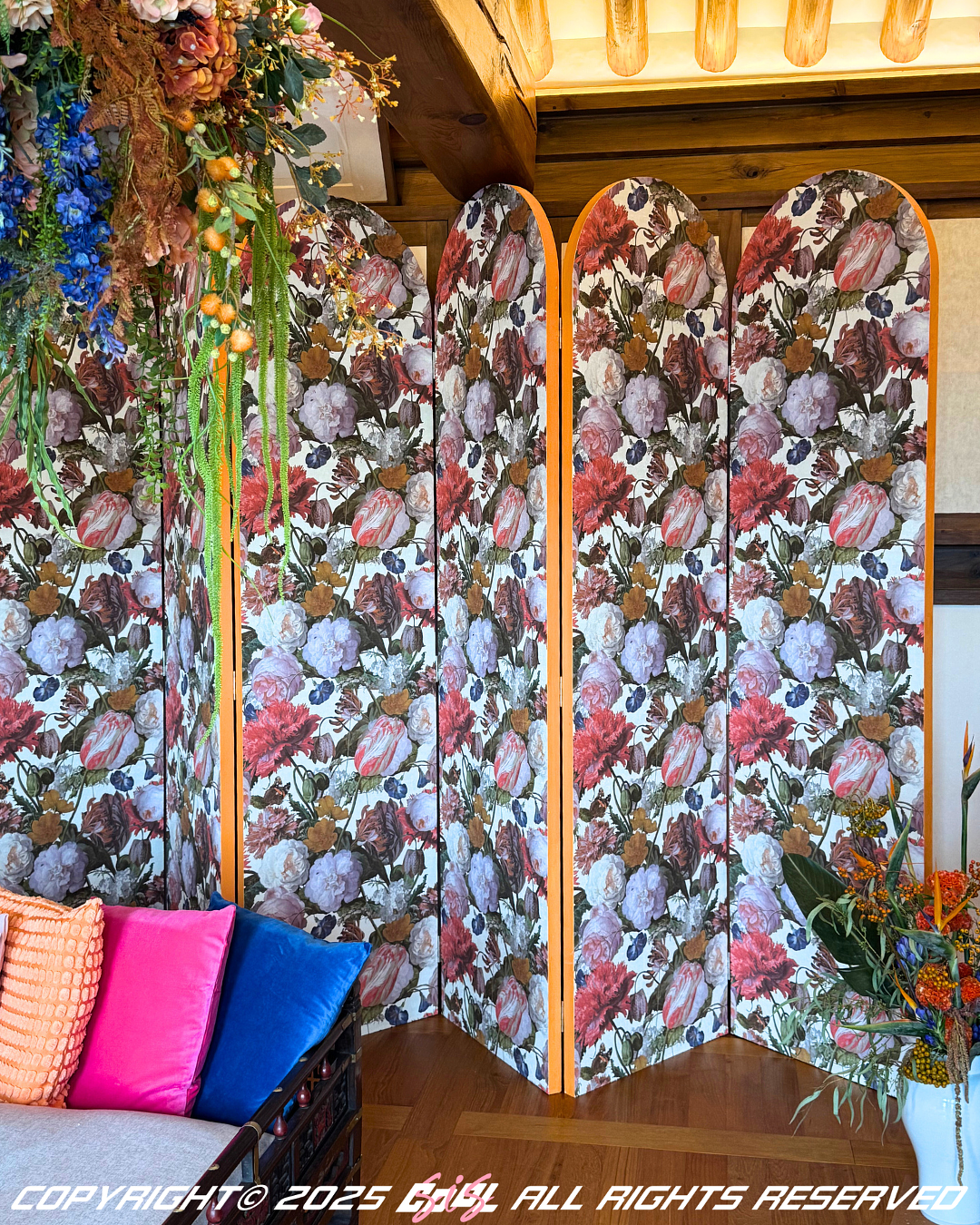 走上「首爾樂古齋北村賓館」三樓庭院,可以向下俯瞰北村韓屋村的漂亮景致,而進入到住宿空間,韓屋中的客廳首先映入眼簾。客廳擺放著傳統沙發,搭配由擁有荷蘭 DFAI 花藝師資格的花藝設計師打造的繽紛花會佈置,以及來自阿姆斯特丹與首爾的插畫家 Coën Pohl 的平面藝術、荷蘭高端室內品牌 Eijffinger 的壁紙與布藝,融合現代與傳統的空間設計一路向內部的休憩區、客房延伸。