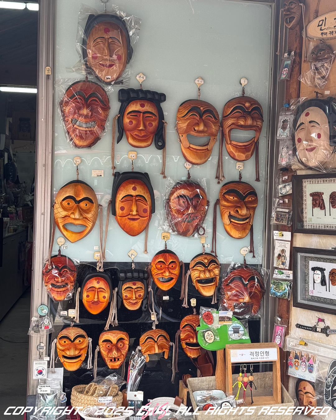 除了古屋建築外,河回假面舞也是這裡的重要文化資產,以幽默諷刺的表演聞名,而在安東河回村多處也可見河回面具。現存於韓國的河回面具約可分為 11 種,各自代表著不同身份及象徵意義,有面帶自信又虛偽微笑的兩班、因地位低下且無話語權而緊閉雙唇的女性角色們⋯⋯等等。