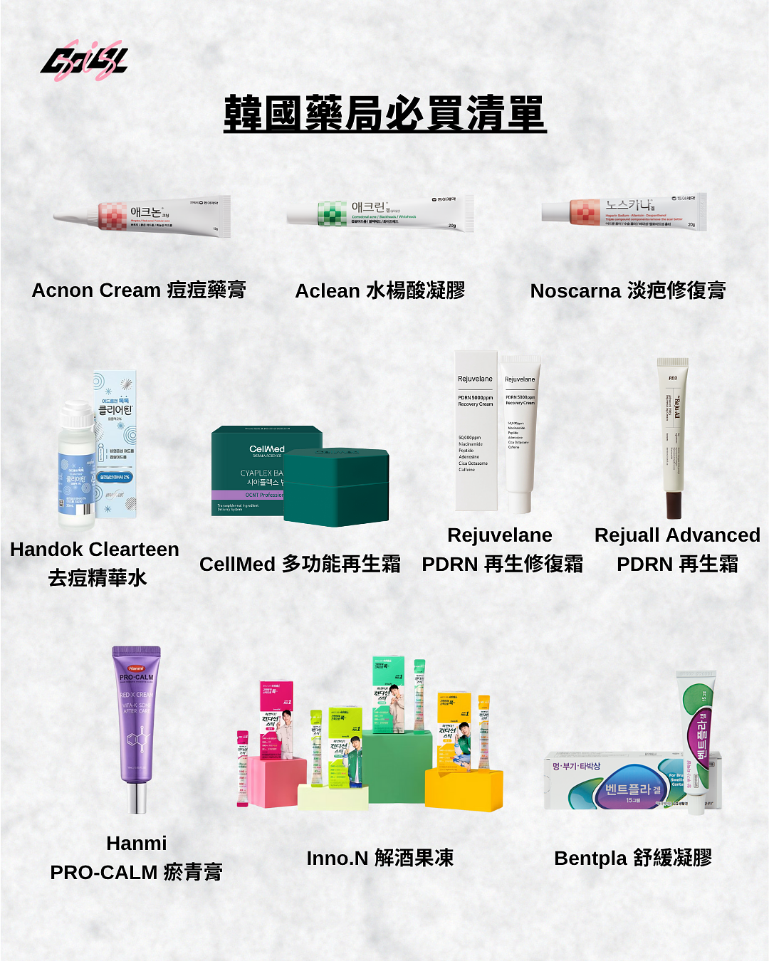 以上就是跟大家推薦的 10 個韓國藥局必買好物,下次去韓國時別忘了前往藥局將他們收入囊中。不過購買藥品也要特別注意,依照產品包裝指示或經過藥師建議再使用,使用前也可以先進行過敏反應測試,確定都沒問題了再繼續使用喔!以下也為大家整理了這次推薦的 10 個好物懶人包,趕快存起來或分享給朋友吧!