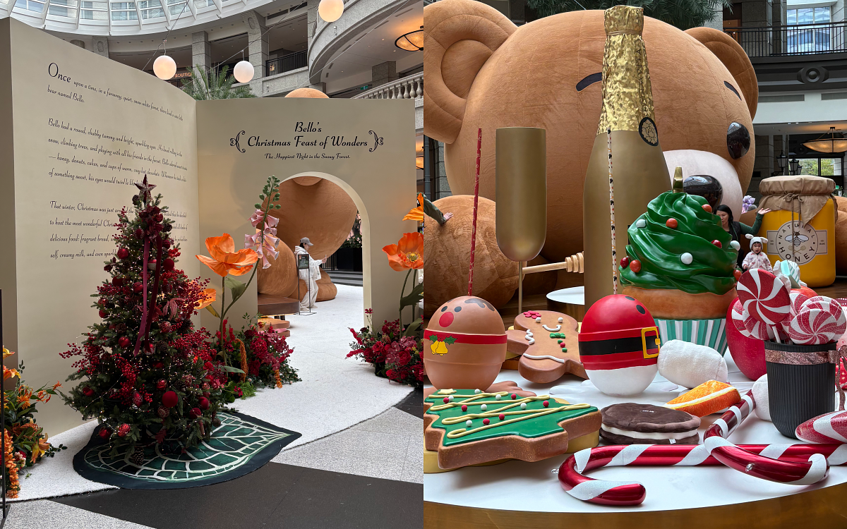 接續 DIOR BEAUTY 的「奇幻星願聖誕樹」主題後,BELLAVITA 迎來超萌的巨型泰迪熊,以及超多放大版的食物打造出彷彿愛麗絲仙境的聖誕療癒打卡點。以「Christmas Feast of Wonders」為主題,造景除了巨大大頭泰迪,還有超豐盛的麵包盤、杯子蛋糕還有可以坐上去拍照的熱可可馬克杯,讓你踏進去彷彿一秒置身甜點國度,可愛爆擊!
