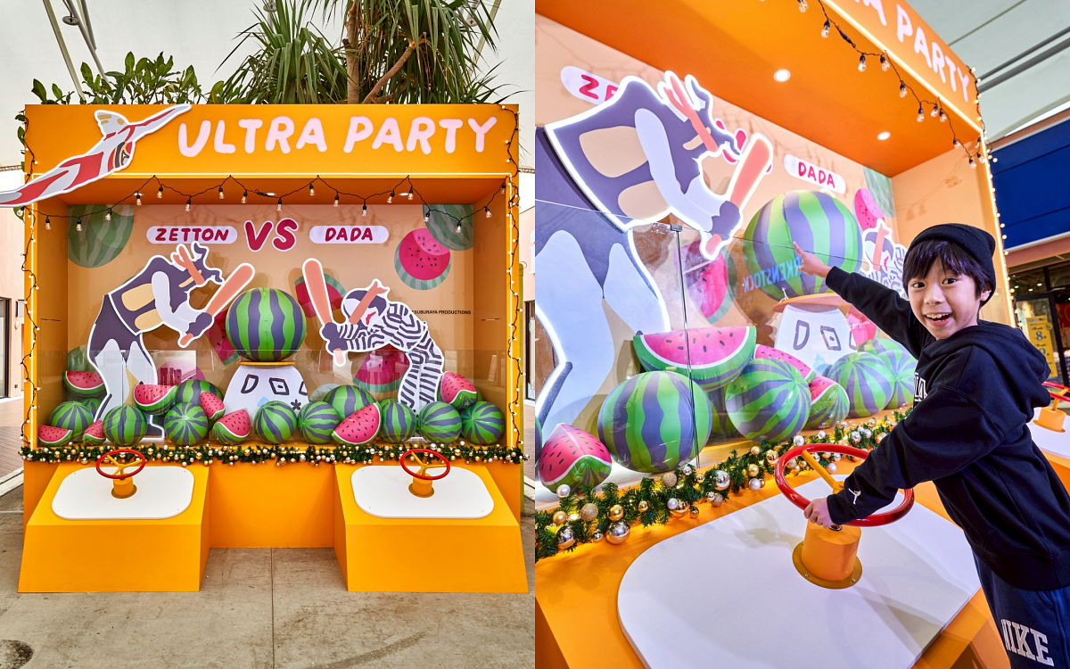 宇宙怪獸入侵城市,是超人力霸王中最經典的場景!台中港店本次打造4大互動場景,要與顧客一同復刻怪獸對決的場面,守護城市和平!其中,初代超人力霸王與超人力霸王太郎將聯手亮相,顧客可以擺出經典手勢,留下帥氣合照!特色互動裝置方面,在「轉動光能‧全面出擊」場景中,顧客可透過旋轉瓶陣裝置,模擬釋放光之能量並擊退怪獸的體驗!而在「交鋒對決‧爭霸開打」場景,大小朋友也可透過旋轉把手,讓最強怪獸積頓、達達做出必殺技。此外,南四口也打造日本味十足的「屋台街景」,聖誕樹的頂端,巧妙以準備降落的「怪獸飛碟」取代傳統星星裝飾,搭配一旁還有巨型的超人力霸王,完整重現宇宙英雄對抗搗蛋怪獸的經典場景!
