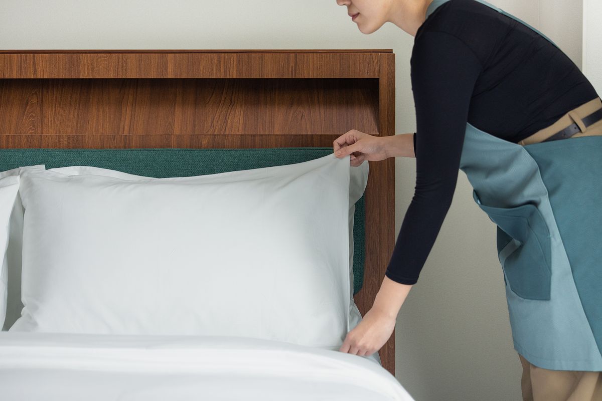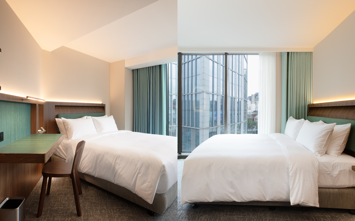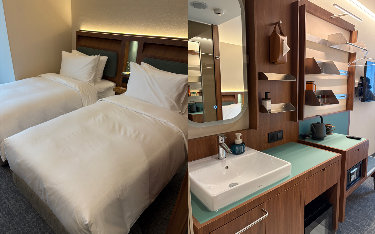 每間客房配置選物皆以「純淨與節奏」為選擇標準,包括來自日本的 「HARIO 琥珀玻璃壺與半影玻璃杯」、台灣手工製作的「林果良品牛皮拖鞋」、來自英國倫敦的「Miller Harris洗沐用品」,讓旅人的休息像是一場細緻的生活重組。