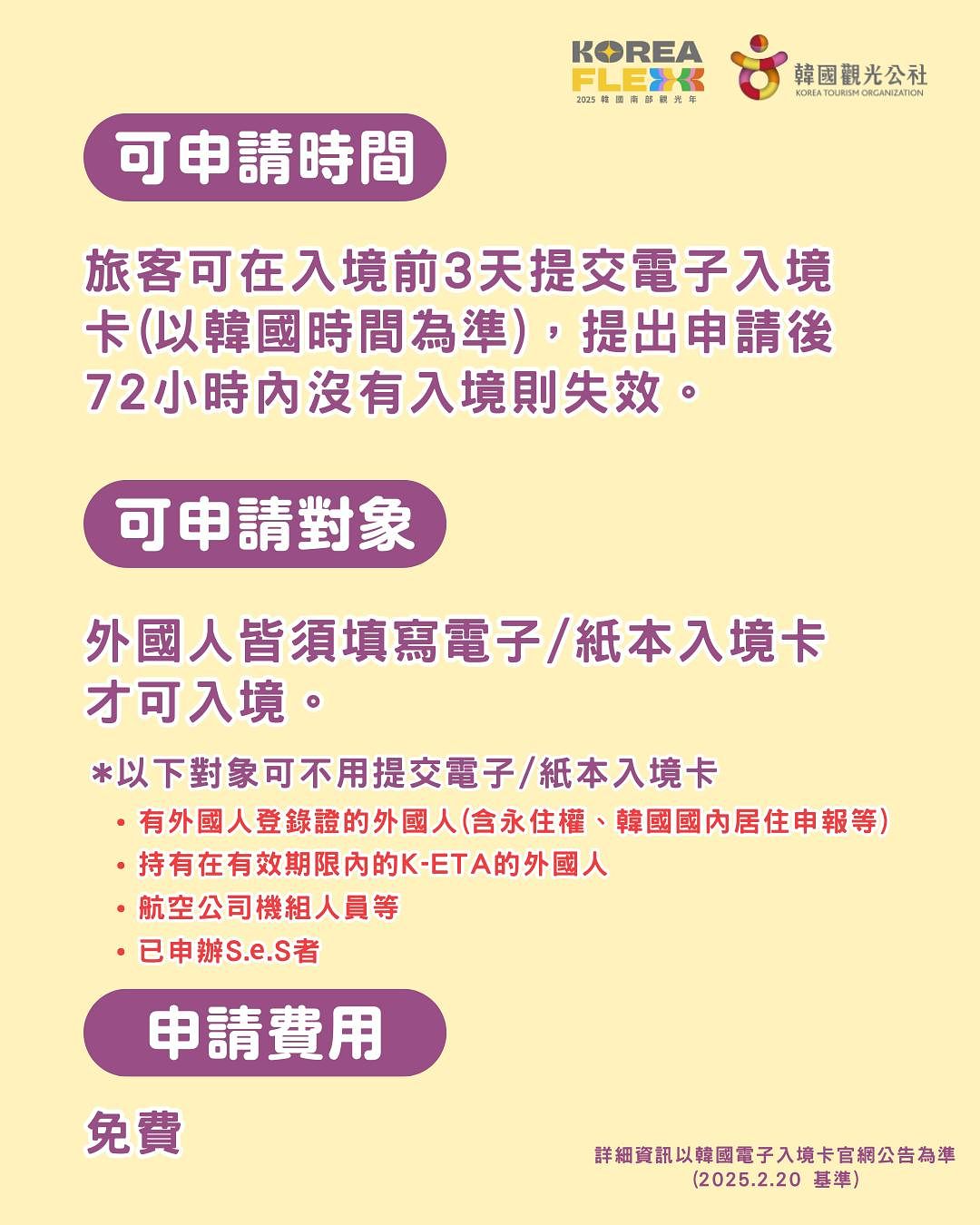 相信大家過去入境韓國時,都曾經在飛機上向空服員索取過「紙本入境卡」吧?原先若你是沒有申請過有效的 K-ETA 或者是辦理過韓國自動通關 SeS 的朋友,在入境韓國時都必須提交手寫的紙本入境卡。而 2025 年二月開始韓國官方宣布,外國旅客可於入境韓國三日前於線上填寫「電子入境申報 (e-Arrival card)」,2026 年 1 月 1 日起則全面都改為線上填寫「電子入境申報」資料,落地韓國之後就無需再填寫紙本的入境卡囉!