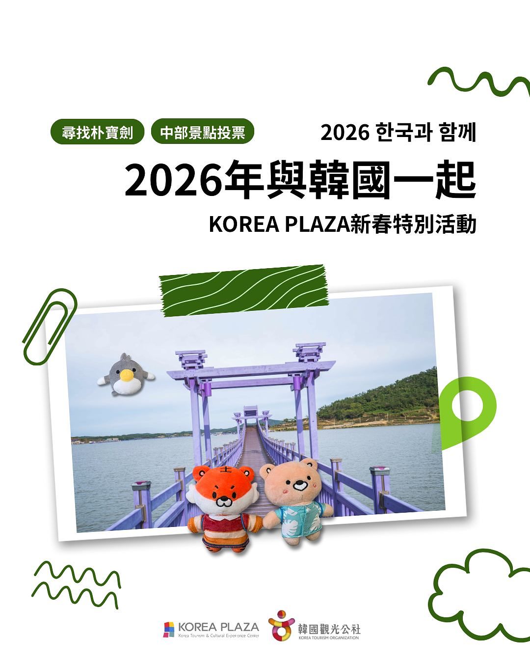 參與現場活動將抽出超過 400 個獎項,包含 150 份 2026 年年曆(與兩大啦啦隊韓國女孩李多慧、李雅英共同拍攝)、韓國地方特色旅遊好物(如保溫瓶、小行李箱、野餐墊等)以及韓國人氣零食(巧克力派、牛奶糖)、韓國傳統手環、鑰匙圈等好禮,邀請大家 1/7 至 2/13 一起到台北 KOREA PLAZA 玩!