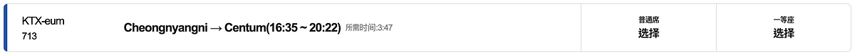 首爾清涼里站→釜山 Centum 站