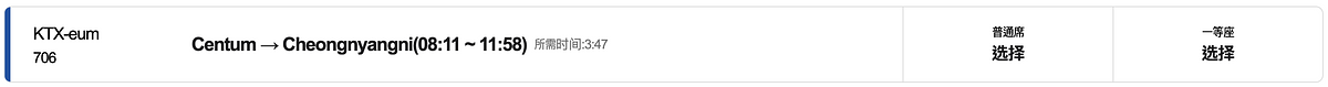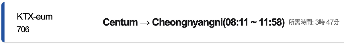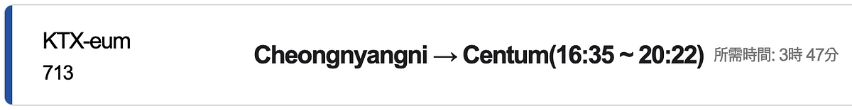 釜山 Centum 站→首爾清涼里站