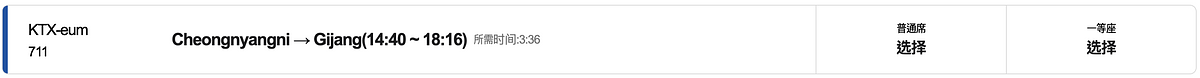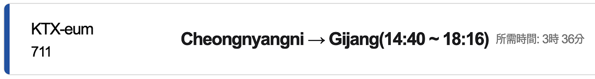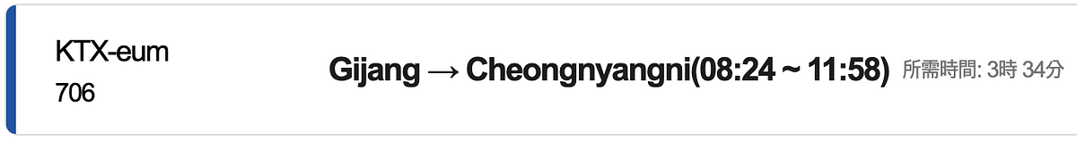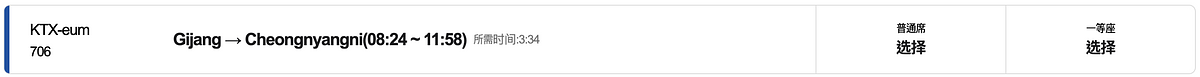 首爾清涼里站→釜山機張站