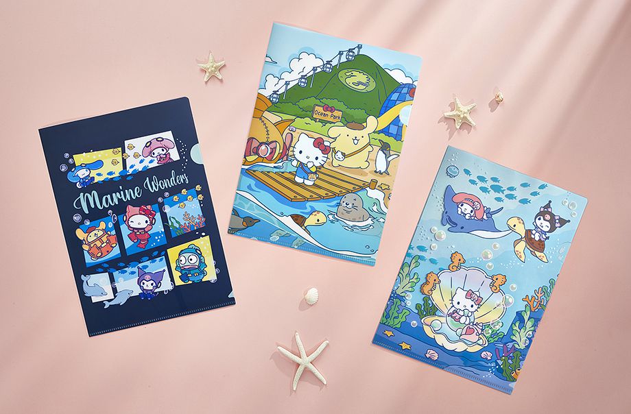 圖片來源:香港海洋公園這次聯名的周邊也同場加碼登陸園內各個遊戲攤位,包括海星主題造型的人魚漢頓和布丁狗,以及粉紅貝殼造型的 Hello Kitty 絨毛公仔,其他獎品包括海洋公園 x 三麗鷗拖鞋和水杯。凡購買滿港幣 500 元的遊戲攤位現金券,即可獲贈一套「Sanrio characters 文件夾」(3個),數量有限,送完即止。快來挑戰各個遊戲攤位,將獎品通通贏走!