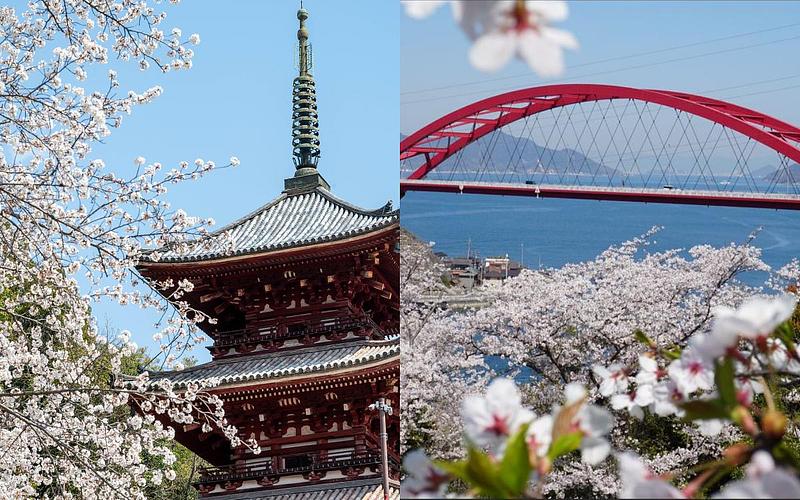 若想在春日旅途中尋覓一處清幽的賞花之地,三原市的「棲真寺公園」也是當地人推薦的好去處。花季約在三月下旬至四月上旬,遊客可在步道上悠閒散步,抬頭即是滿開的粉嫩櫻花。少了喧鬧,多了沉澱,讓人自在地享受春光。園內瞭望台還可遠眺日本第一大的拱橋「廣島機場大橋」,櫻花與遼闊景致相映,層次豐富。