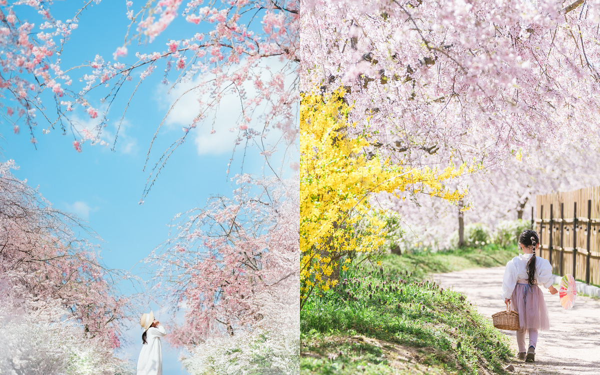 每年三月下旬至四月上旬,世羅高原農場都會舉辦櫻花祭,幾乎要遮蓋住天空的枝垂櫻彷彿暖簾般,在農場入口熱情迎接每一位到訪的旅客。櫻花將約三公頃的廣闊丘陵染成一整片的柔和粉色,同時期亦是油菜花的花季,黃澄澄的油菜花更將春季的世羅高原點綴成色彩分明的絨毯。特別推薦來到園區內的「三春之丘」,甜美夢幻的粉嫩櫻花、金黃明亮的油菜花及清爽澄澈的藍天層次分明,交織出美不勝收的春日三色絕景,保證讓人少女心大爆發、快門按不停!晚間六點到八點則有夜間點燈活動,可欣賞到與白天截然不同,猶如浮現在春夜中嬌豔的夜櫻。別有一番迷幻風情!