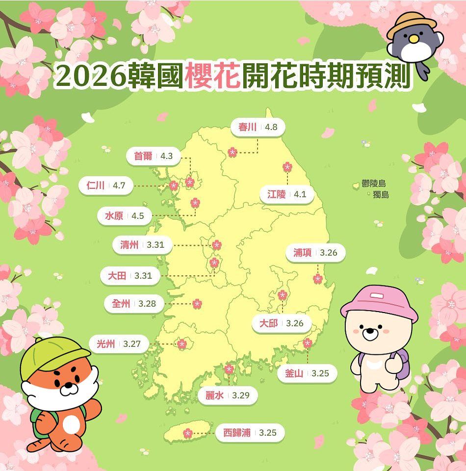 2026韓國櫻花季「全國各地開花期預測」出爐!首爾、釜山、濟州最佳賞櫻時間點快筆記!