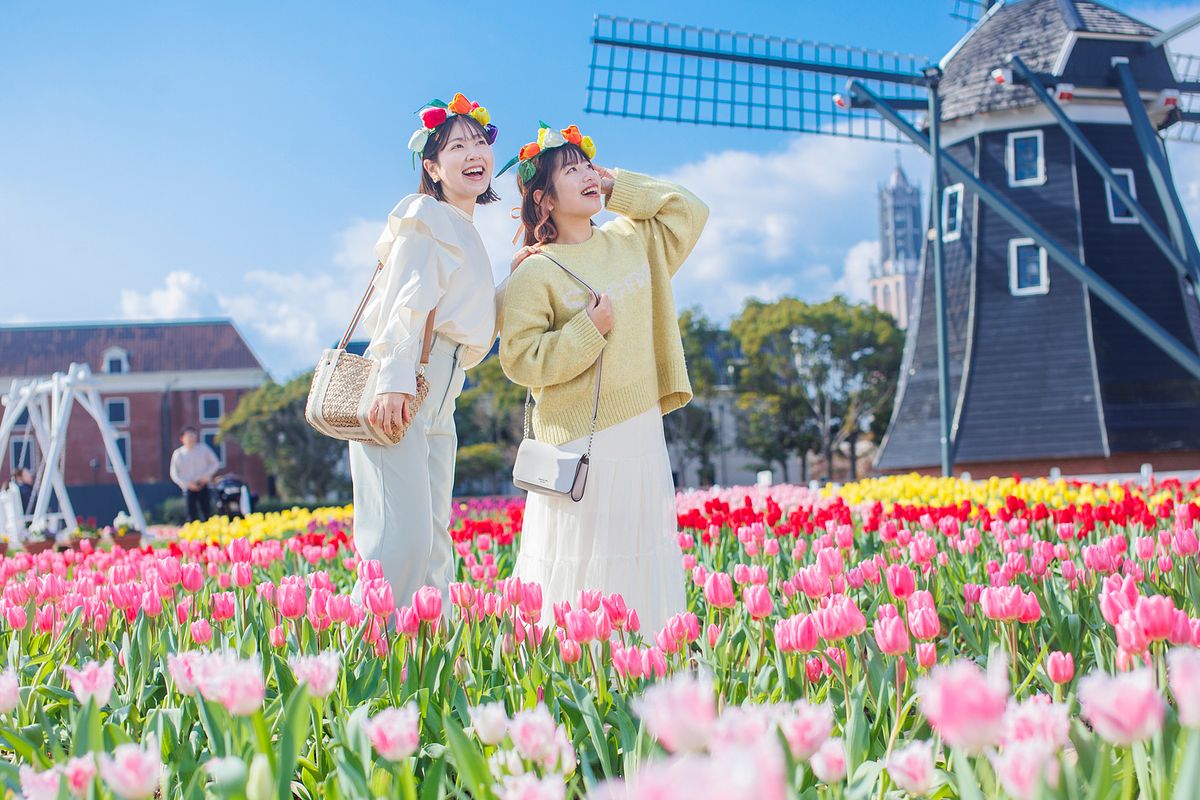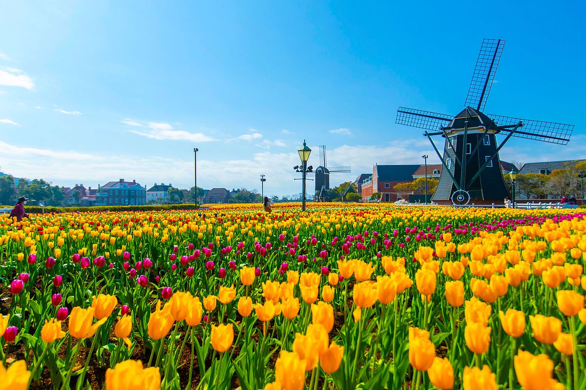 每年春天登場的「花之慶典」為豪斯登堡最具代表性的季節活動之一,從春季盛開的繽紛鬱金香到 5 月中旬初夏綻放的玫瑰,遊客可漫步於「花卉道路」,欣賞日夜變化的花之絕景,搭配歐式街景與運河風光,營造宛如歐洲花園般的浪漫氛圍。清明連假期間,豪斯登堡宮殿前盛開的原創品種鬱金香「豪斯登堡」夢幻花海,更是最受矚目的賞花焦點之一。