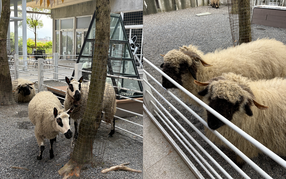 免費入園的黑RURU CAFE,就在 綠舞國際觀光飯店的正對面,可以看到超人氣的瓦萊黑鼻羊與熊貓羊,療癒指數直接拉滿。一邊喝咖啡、一邊看可愛動物發呆,是旅途中最放鬆的片刻之一。這邊也能餵食羊群,同樣適合帶小朋友來放電!