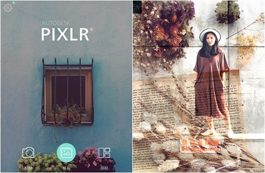 下載好PIXLR後,就快打開它吧!可以簡單看到下面有三個選項:立馬拍照、從相簿挑選舊照、拼圖功能,這次要編修相片所以就點選中間的,從舊照中來製作重曝照!